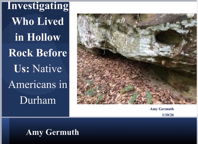 Please come to our first member meeting of 2026 on Tues Feb 24. We will discuss our plans for the year as well as sharing pizza starting at 6:30 pm and our short meeting will be followed by a talk by local historian and Solterra resident Dr. Amy Germuth. She will show artifacts found in the New Hope Creek area including arrowheads and she asks that our members and the public bring in any arrowheads found in this area which she will try to help place in the historical record. Hope to see everyone there.